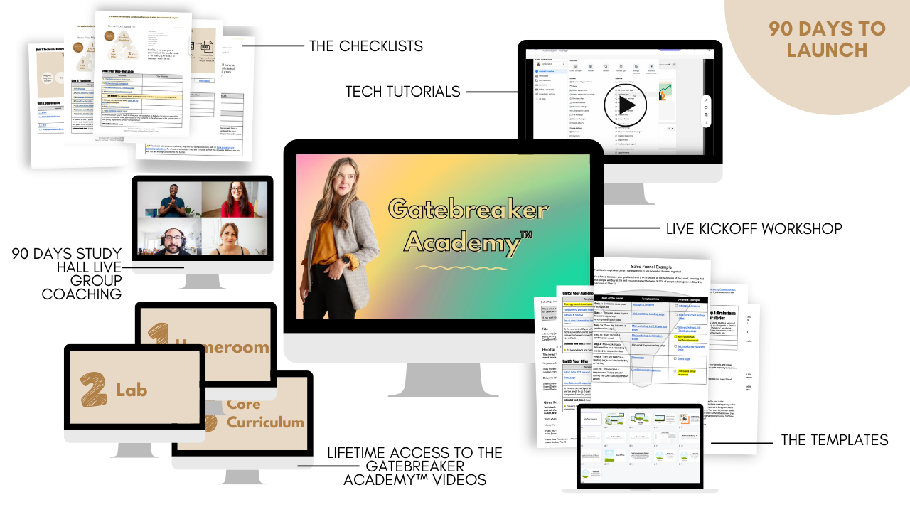 Cut the tech overwhelm by seeing exactly how it’s done. I'll be showing examples using my platform, Kajabi, but all platforms are similar. I also go step by step through Facebook ads so that you can run them with confidence!